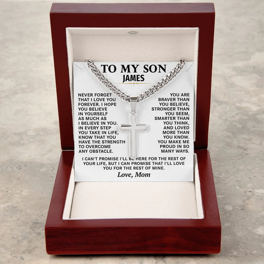 Personalized Gift For Son - Artisan Cross on Cuban Link Chain - S9