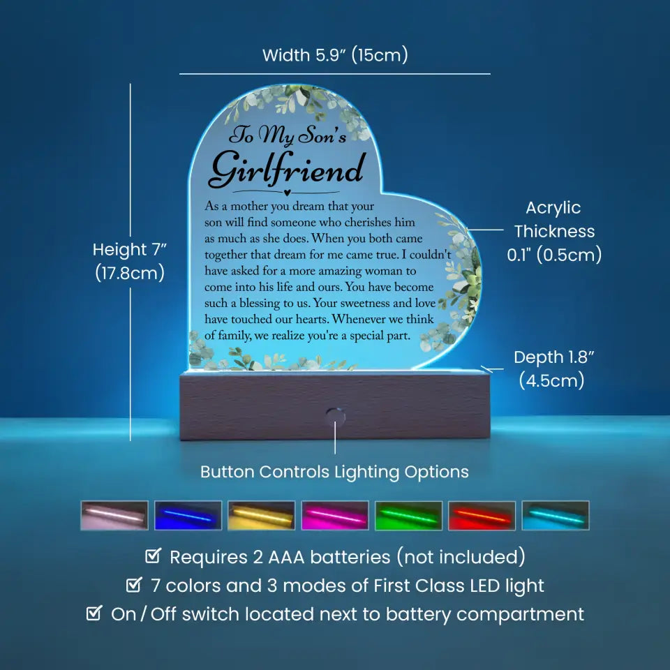 Gifts For Son's Girlfriend, Son's Girlfriend Heart Acrylic Plaque - A34